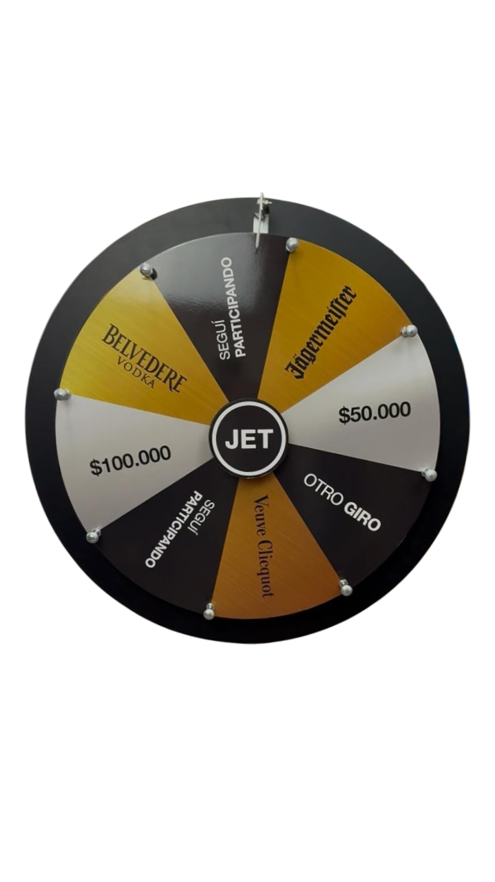 Todas nuestras ruletas y juegos incluyen el diseño (solo nos tenes que compartir tu logo, los colores y los textos que te gustarían que coloquemos en cada porción). Nuestro tiempo de producción es de 7 días hábiles una vez que tenemos definido el diseño.